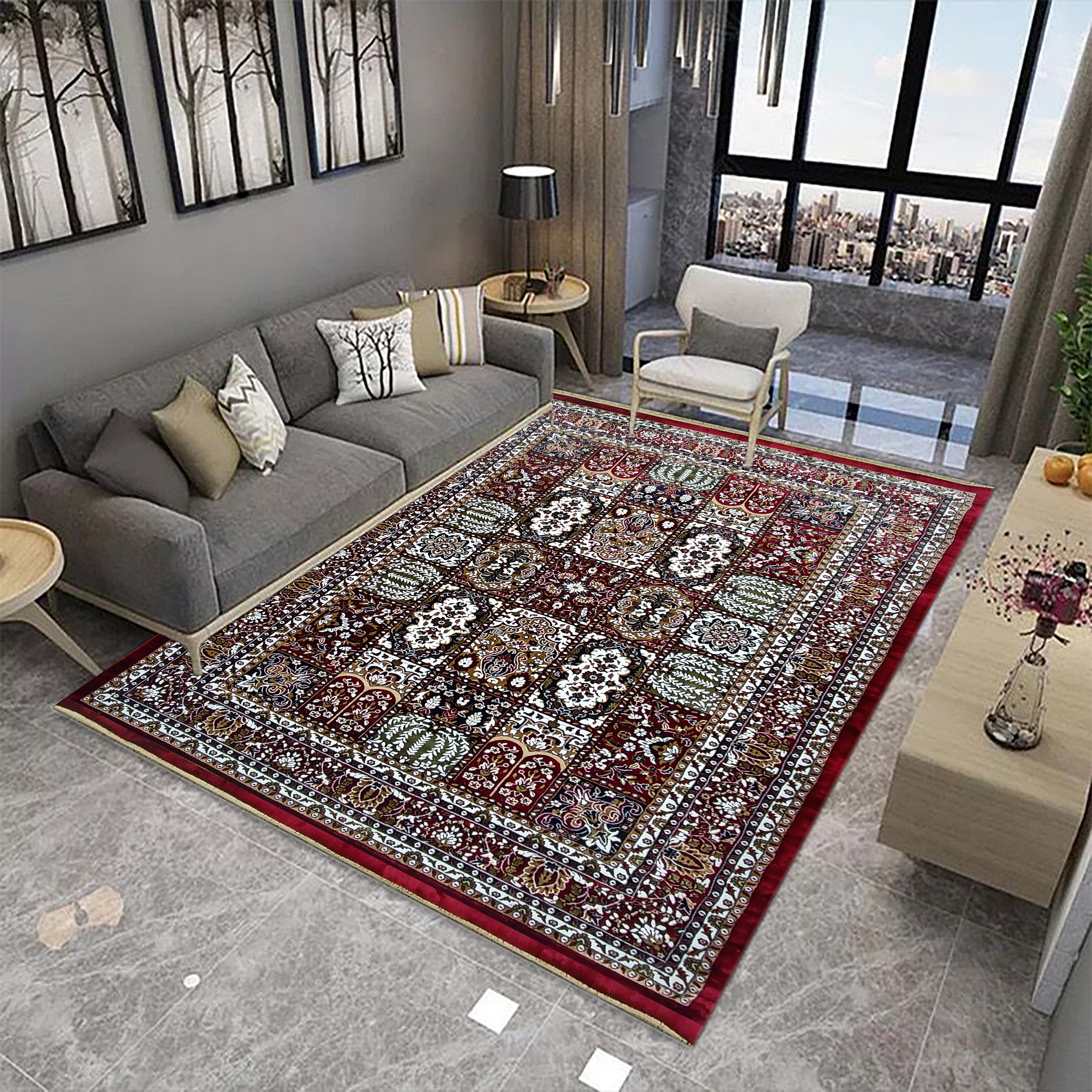 Transform your space with this luxurious maroon rug. Its rich, inviting color creates a sense of warmth and comfort, turning any room into a relaxing haven. The subtle sheen adds a touch of elegance, making it an ideal accent for your living room or master suite.